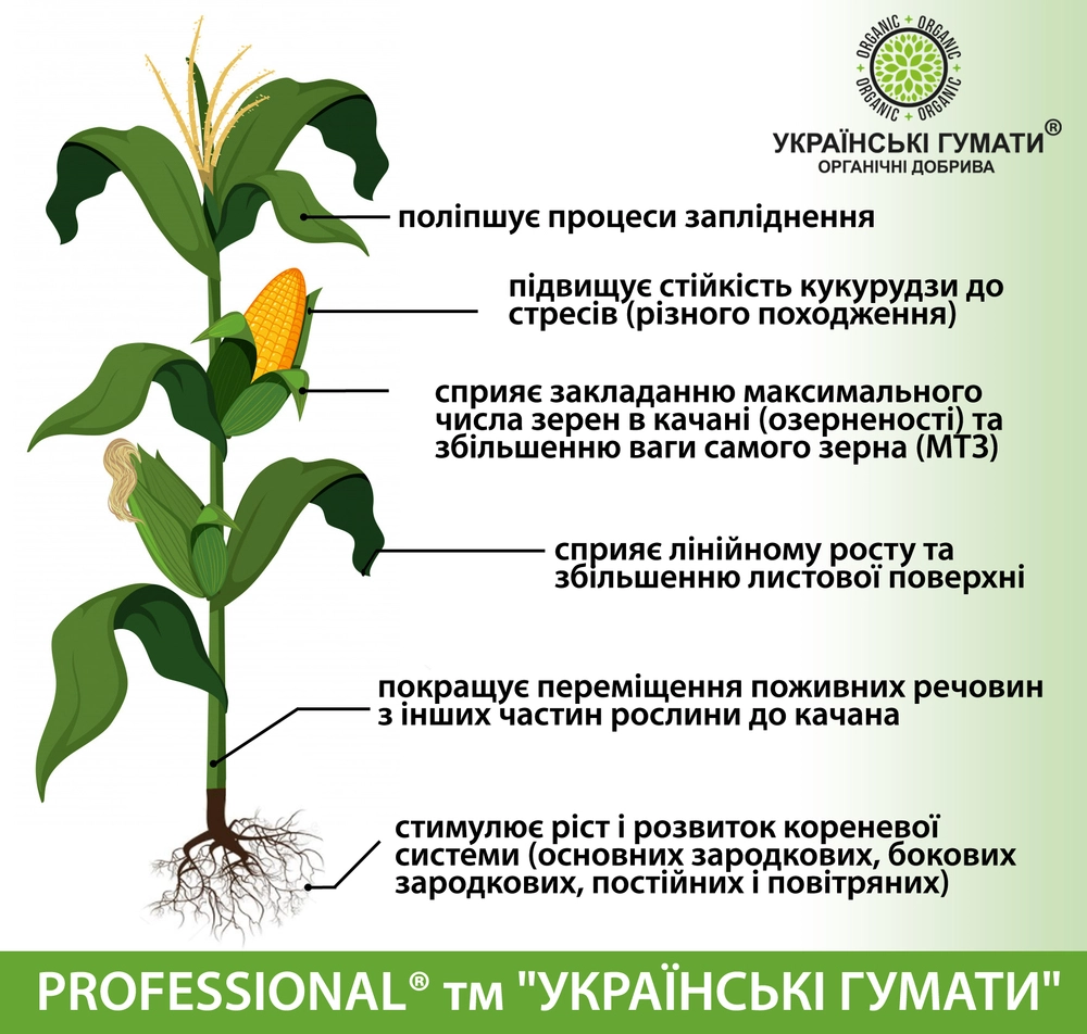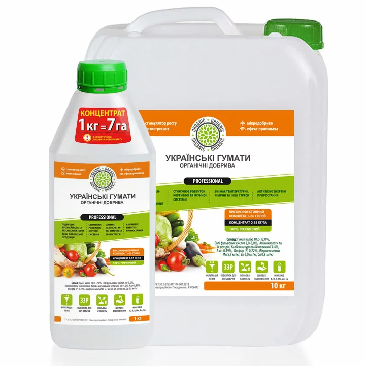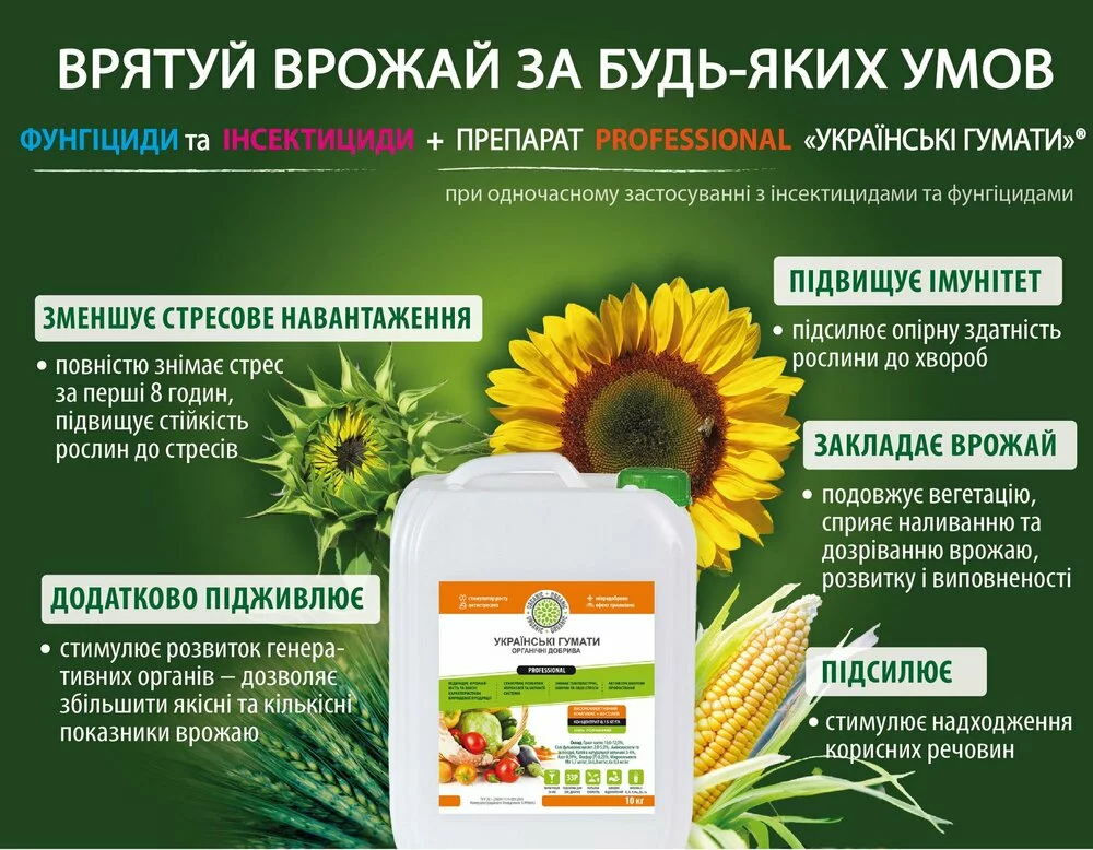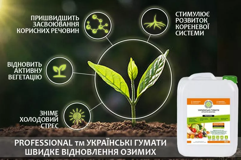 PROFESSIONAL ТМ «Українські гумати» - це професійний концентрований препарат, що є потужним антистресантом, органічним стимулятором росту та мікродобривом.